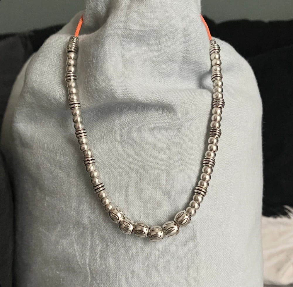 Collier perles argentées . 40/45 cm