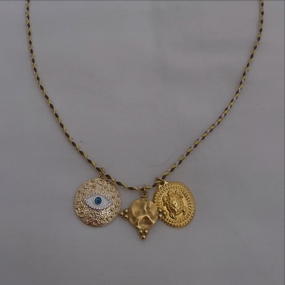collier sautoir 65cm . médailles dorées .