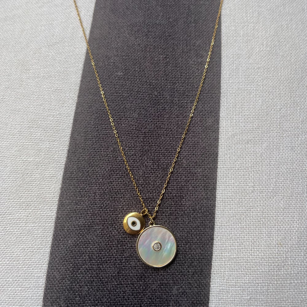 Collier plaqué or et médailles . 60 cm + 5 cm
