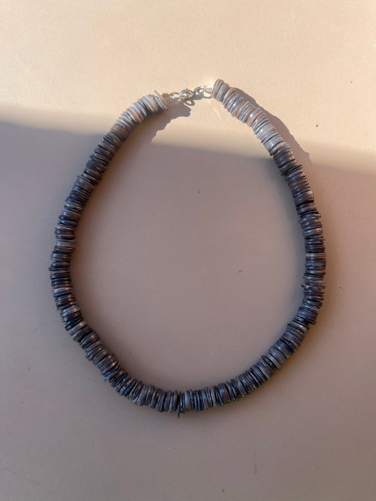Collier 40/45 cm . Perles bleutées .