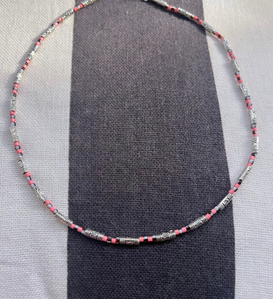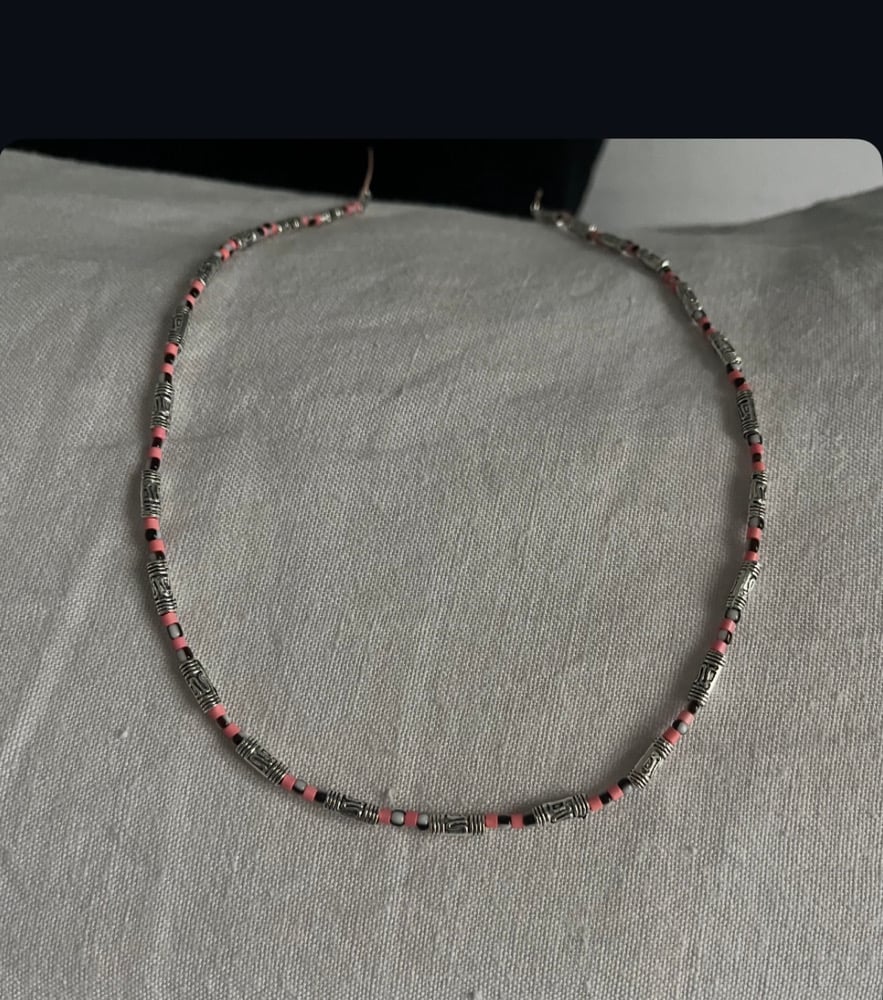 Collier argent et rose . 42/45 cm