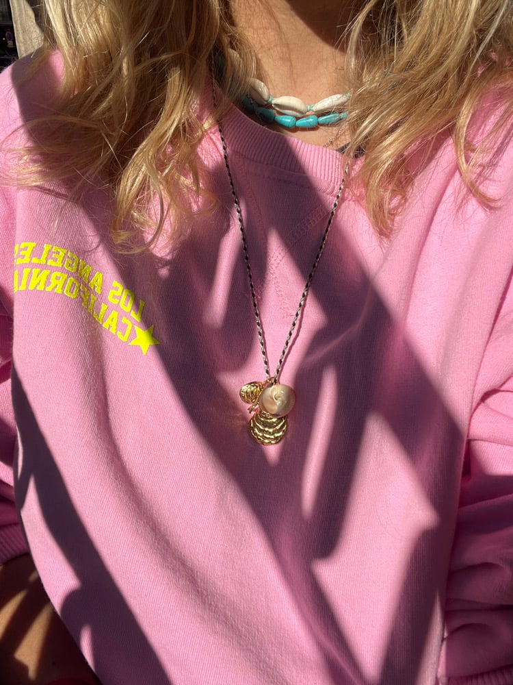 Le collier merveille sautoir grigris qui se porte toute l année . Fil de jade tressé noir et blanc . 80 cm